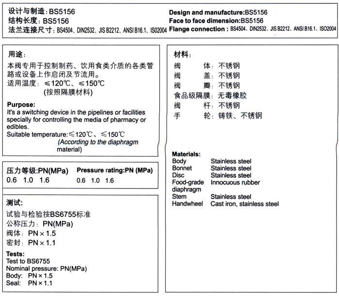 2、若已经由设计单位选定我公司的卫生级隔膜阀产品型号,请按型号直接向我司订购;